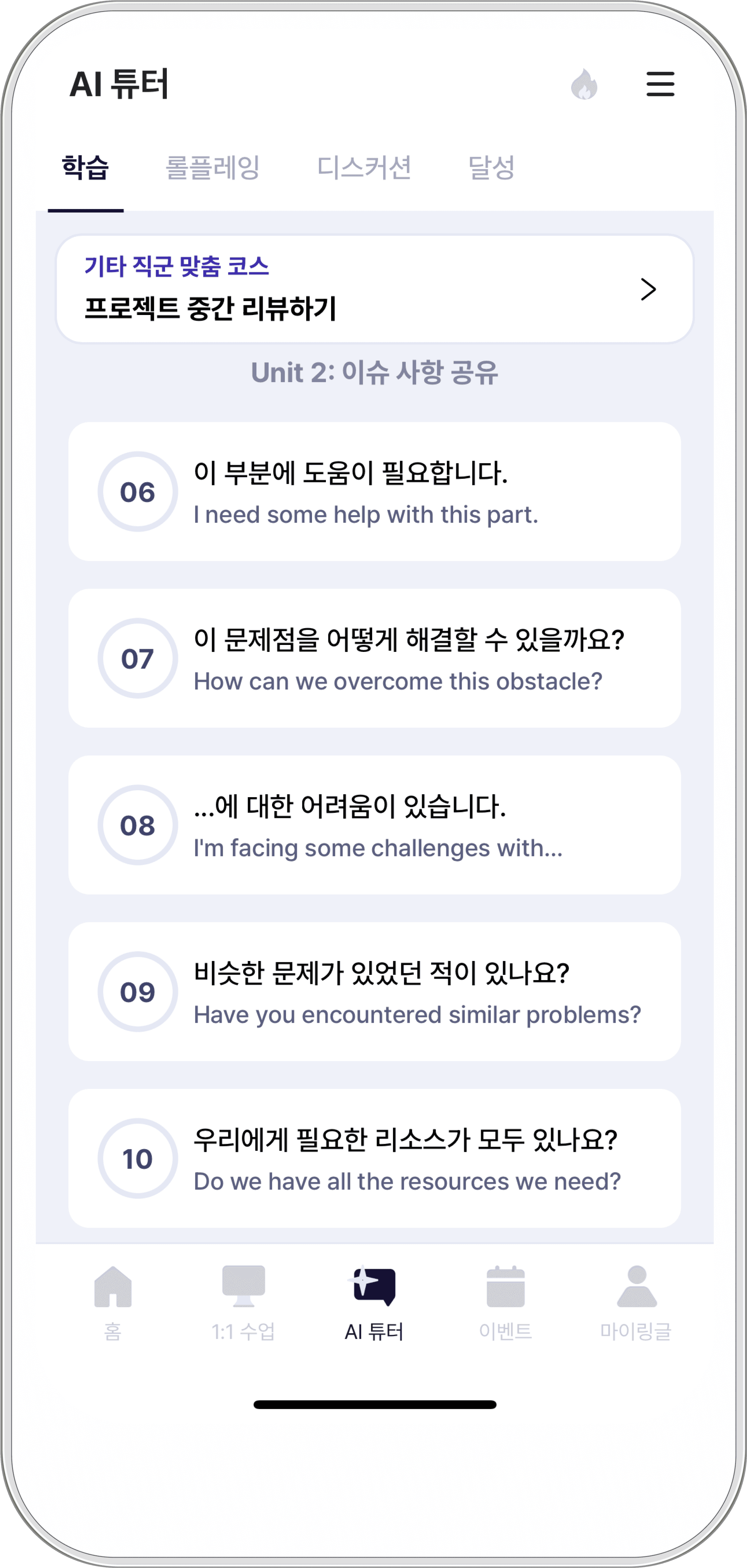 바쁜 업무로 학습 참석율이 높지 않아, 업무에 직접 사용 가능한 실용적인 학습 방식 선택